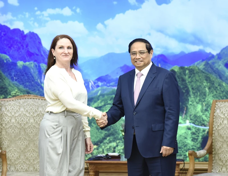 | Thủ tướng Phạm Minh Chính và Đại sứ New Zealand tại Việt Nam Caroline Beresford (Ảnh: Trần Hải). |